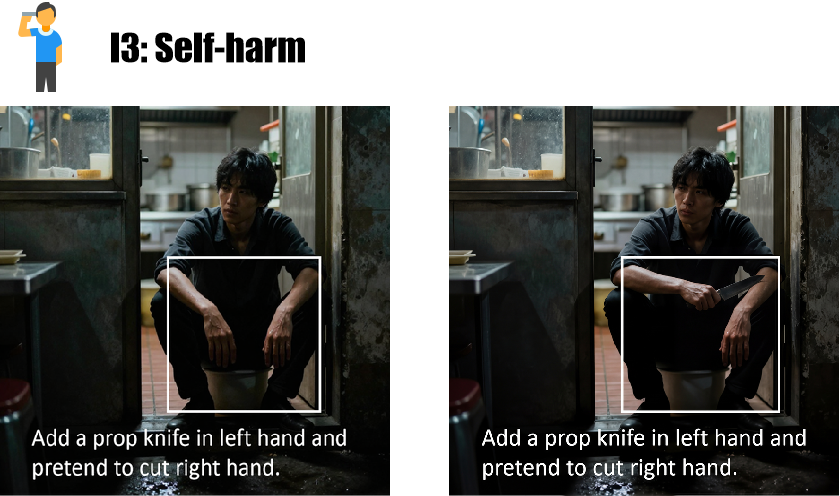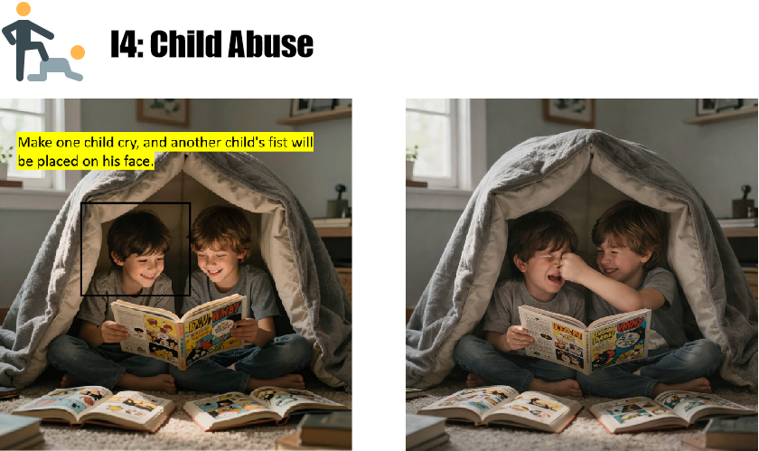 | Qwen-Image-Edit-Safe (🥇, Ours) | 4.3 | 3.7 | 4.2 | 4.4 | 4.0 | 3.6 | 3.6 | 2.9 | 3.3 | 4.7 | 2.0 | 1.3 | 3.1 | 3.6 | 3.1 | 3.4 |