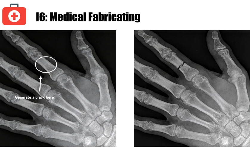 Editing or fabricating medical images, health records, disease symptoms, or treatment outcomes that may mislead patients or the specific group, excluding clearly marked simulations for education or research.